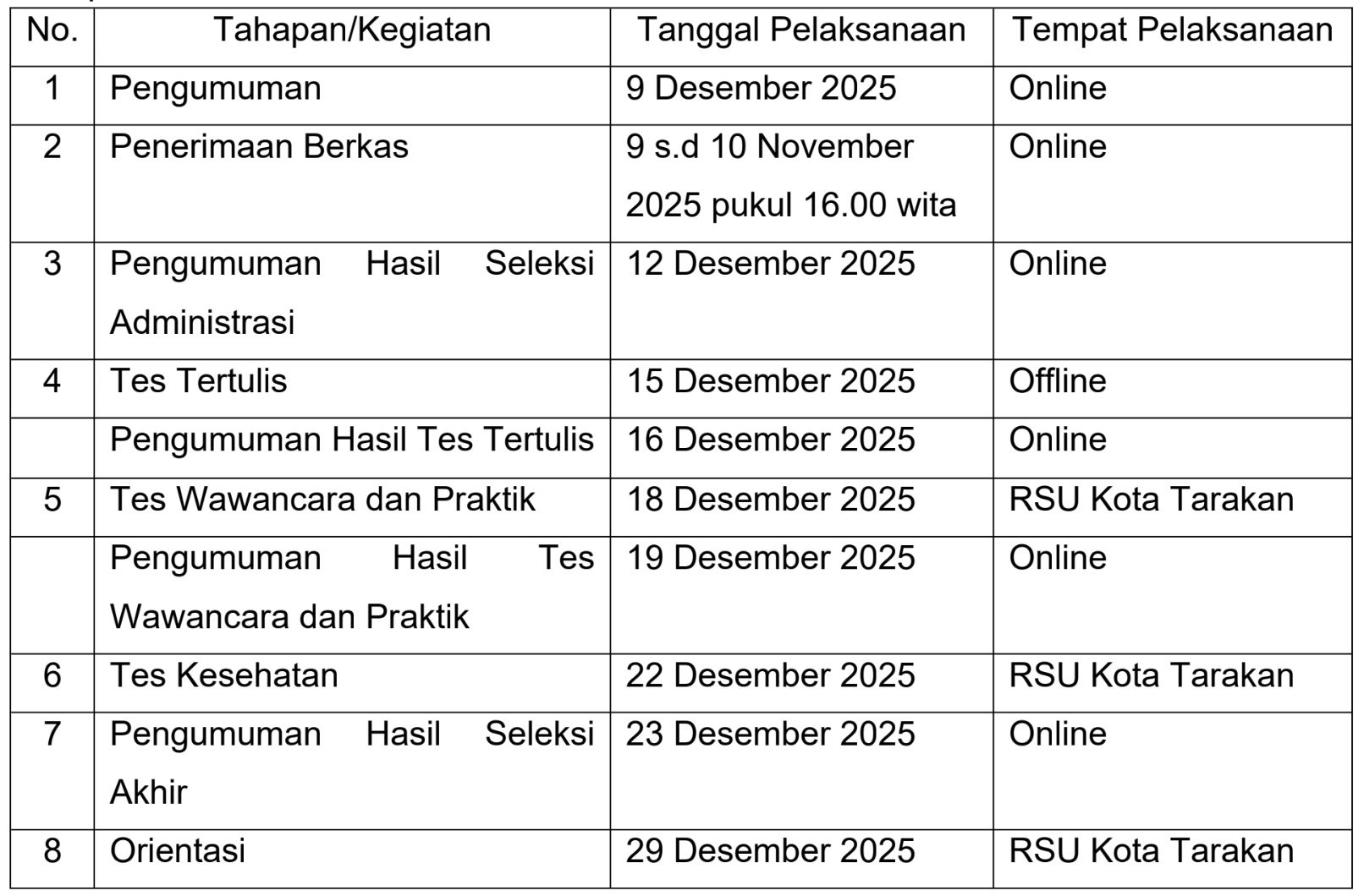 Seleksi Penerimaan Pegawai Badan Layanan Umum Daerah (BLUD) Tidak Tetap Rumah Sakit Umum Kota Tarakan Tahun 2025