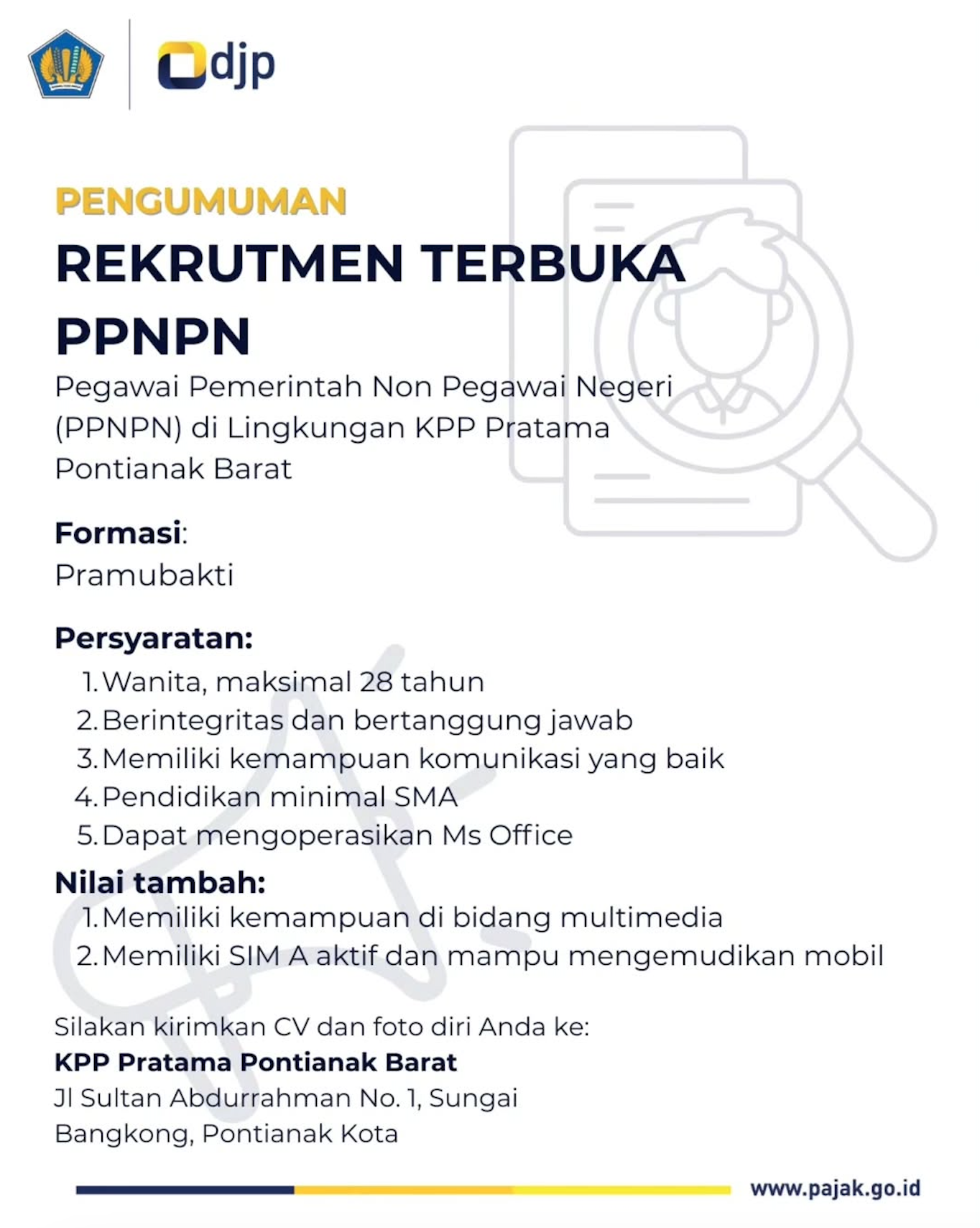 Penerimaan Pegawai Pemerintah Non Pegawai Negeri (PPNPN) di Lingkungan KPP Pratama Pontianak Barat