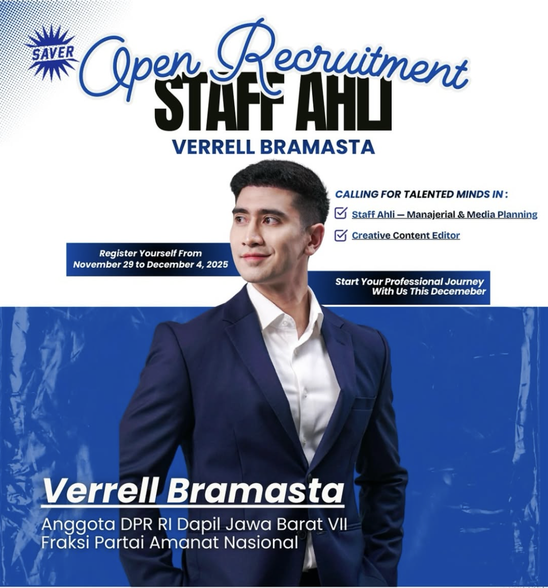 Program Rekrutmen Staff Verrell Bramasta merupakan inisiatif untuk menjaring talenta profesional yang siap berkontribusi langsung dalam mendukung tugas dan fungsi Anggota DPR RI. Berbeda dengan program magang, rekrutmen ini ditujukan bagi individu yang ingin bekerja secara penuh waktu, mengambil peran strategis, serta menjadi bagian dari tim yang menangani agenda legislatif, komunikasi publik, dan kegiatan politik sehari-hari. Rekrutmen Staff Verrell Bramasta